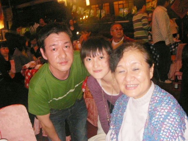 章魚燒的老闆塩崎和他的媽媽,他媽媽不小心把眼睛閉起來啦~。