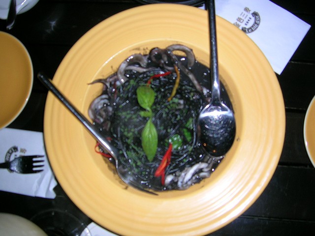墨魚麵就像是普通的義大利麵,只是顏色黑色的很有趣,