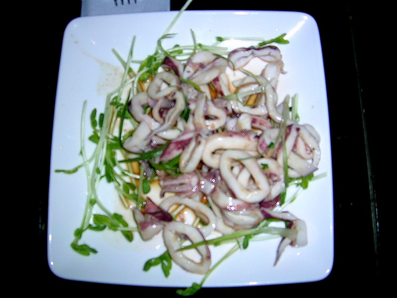 爸爸點了涼拌墨魚還有一杯黑麥啤酒