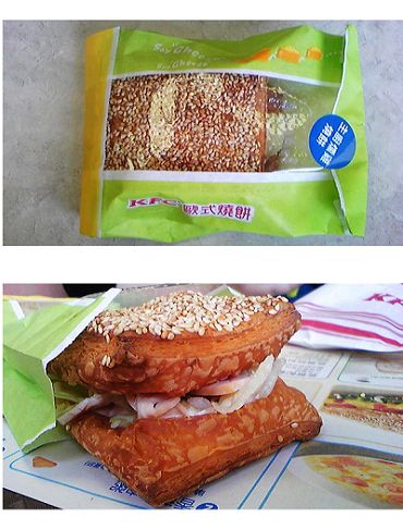 歐式燒餅不會很不搭,有點像舖滿芝麻的千層麵包加上雞肉,還滿好吃的