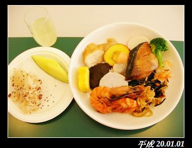 我們早上吃的おせち料理,這樣一小盒就要1980円耶!