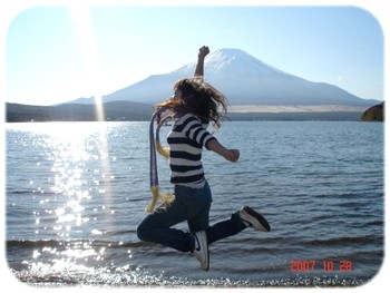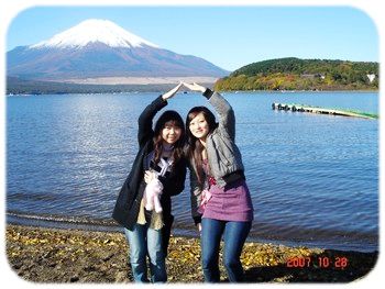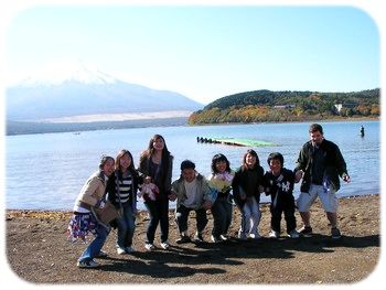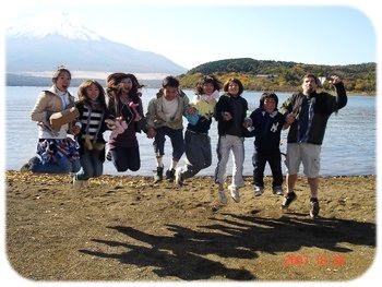 活動結束後,最後全體集合,在湖邊跟富士山拍紀念照