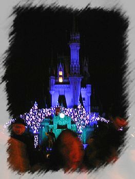 晚上在城堡前面有 灰姑娘加冕典禮 有很多很漂亮的イルミネーション