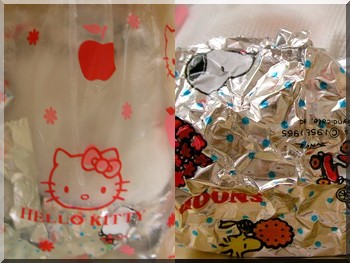 用很可愛的kitty的袋子裝著,裡面還用snoopy的鋁箔紙包著