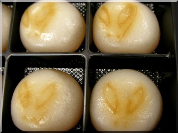 帶了土産回來給我們吃,麻糬上面印著小兔子也好可愛