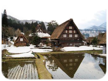 合掌造陡峭的屋頂是為了避免冬季的大雪將屋頂壓垮