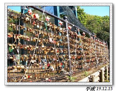 很多情侶會買一個鎖頭,在上面寫上名字和一些話,然後把鎖頭鎖在這裡