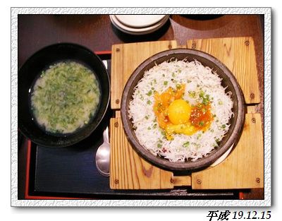 江之島的名物是海產,這是這間店的名物,魩仔魚(しらす)的石鍋拌飯 1,575円