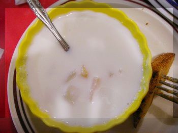 有一個甜點,可以喝的優酪乳加上罐頭水果,超~好吃![]()