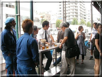 場外市場裡的人很酷,站在外面吃飯