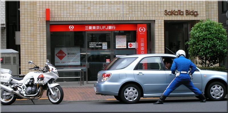 這個警察站的姿勢加上穿的制服,讓小瓶蓋覺得很有趣。
