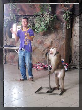 猴子很可愛 會換POSE,還會把你的腳扳開 站在你前面合照