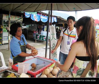 看完七珍佛山,小羅請我們每個人喝大象蛋(烤過的椰子)