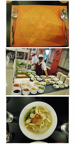 【中】煮米粉、麵的地方,左下角有很多調味料,宜文說泰國人都會在米粉裡加糖,還有魚露辣椒;加糖下去也沒有很甜,一匙魚露辣椒也不會太辣,湯好好喝~