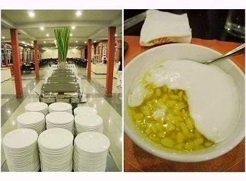 【右】名字不詳的甜點,白色是椰奶,黃色是不詳物,很甜很好吃