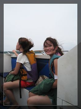 妹的同學好像剛買的竹籐包壞了,所以阿天陪他們去換,我們先回快艇