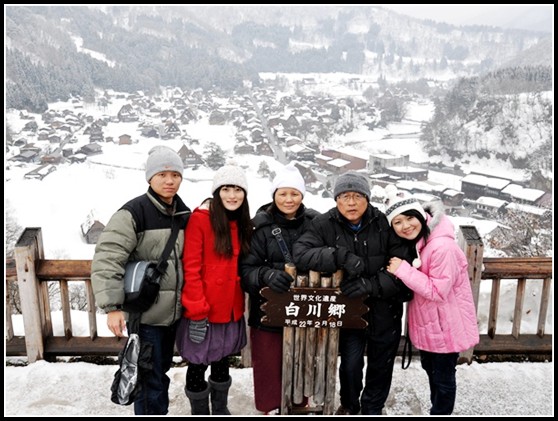 和白川鄉的牌子拍紀念照