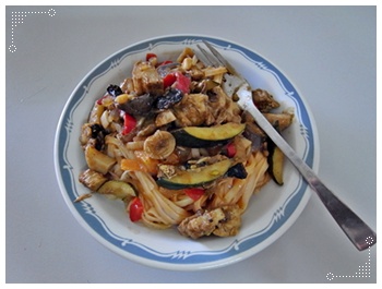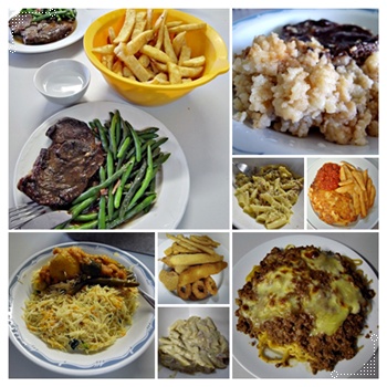前一晚晚餐只有一些菜和薯條...,隔天中午我們又加了麵才像是正餐啊