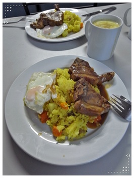 有主食米飯、蛋、羊排,配菜比較多,不像平常都是肉、薯條 就沒了...