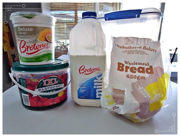 早餐都是冷冷的食物,吐司、麥片、優格、牛奶、柳橙汁