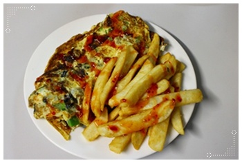 我跟他說和蛋一起煎,做成類似Omlet(煎蛋捲),隔天晚上他就做了這道料理~好好吃喔