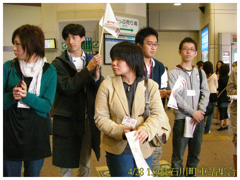 和其他的日本人們在車站集合